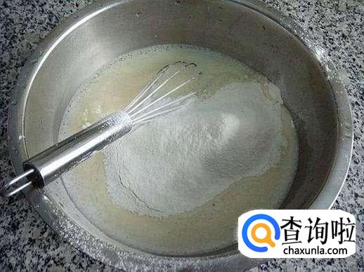 要加入面粉了,这时候手可不要抖哦,加适量面粉。 然后搅拌,要搅拌均匀哦