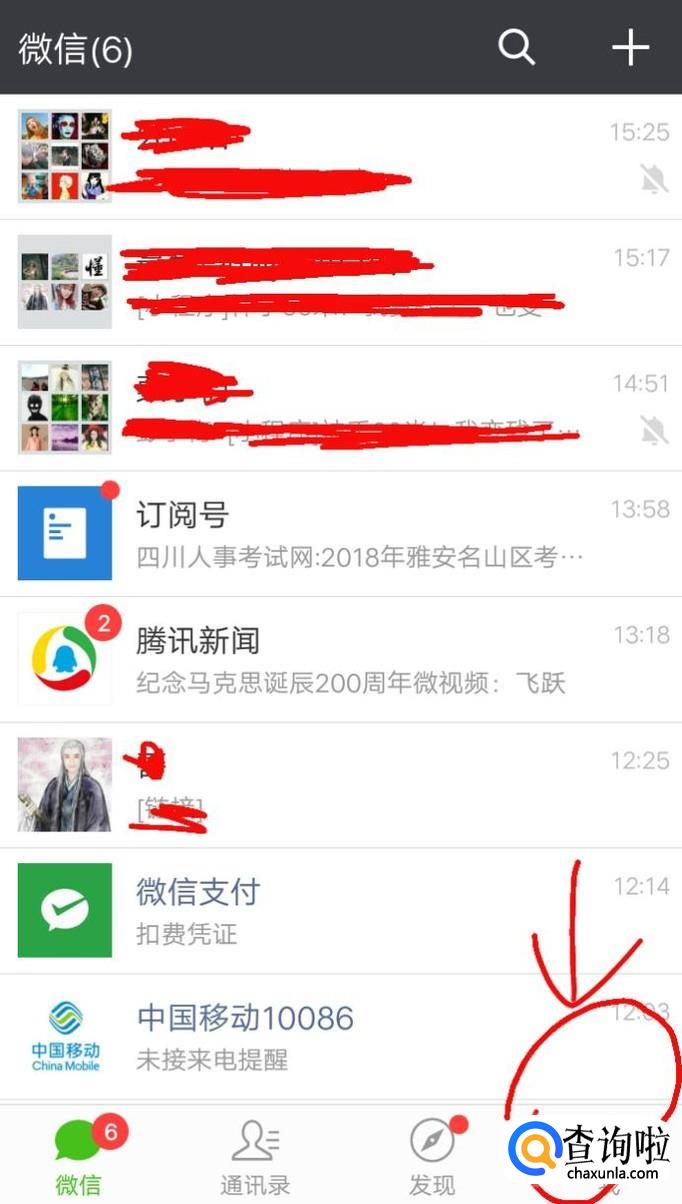 点击进入微信,然后在微信里最下面一排找到“我”,点击并进入