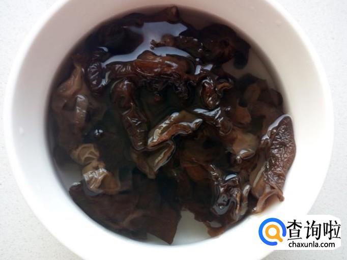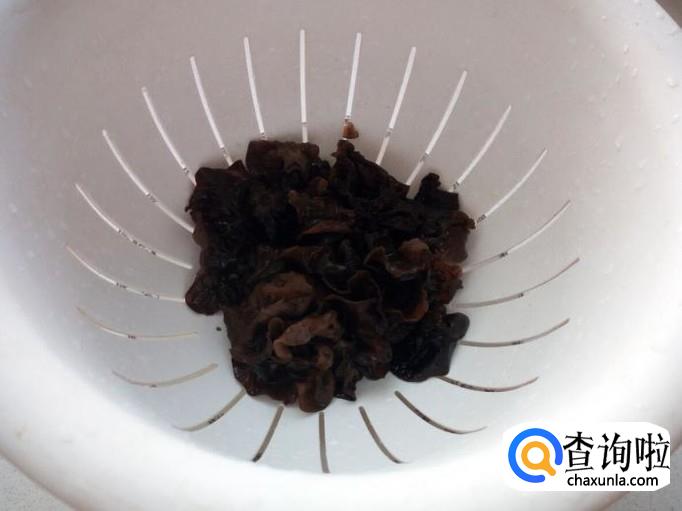 用温水快速泡发木耳,把泡发好的木耳收拾清洗干净,控干水分。