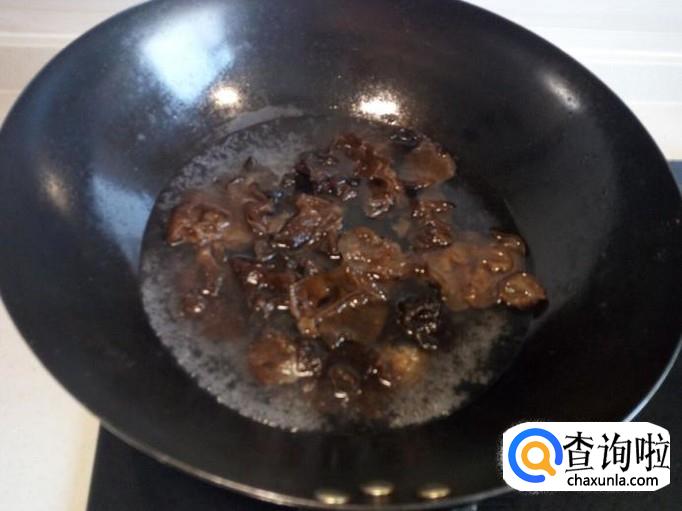 然后把木耳用开水焯一下,入锅30秒钟捞出,沥干水分,备用。