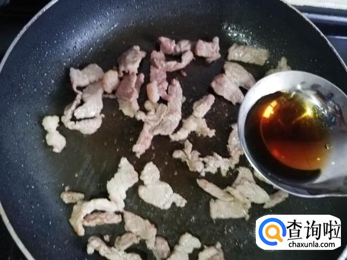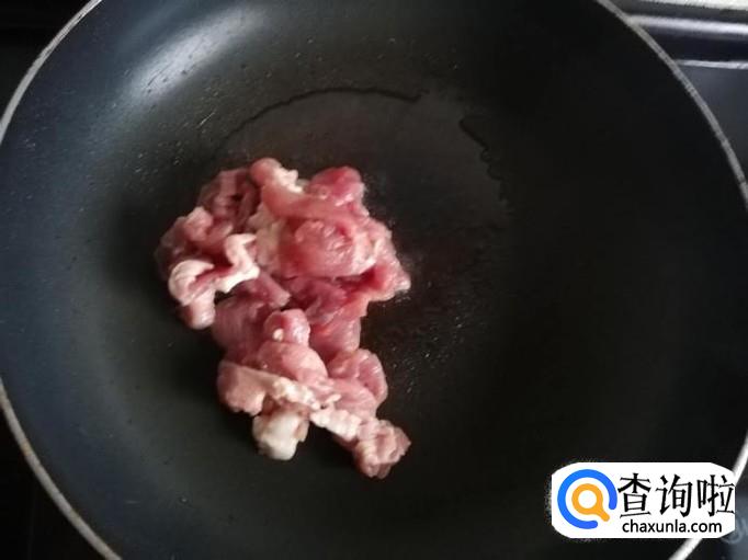 锅烧热,加入适量油,油热后下入肉片翻炒