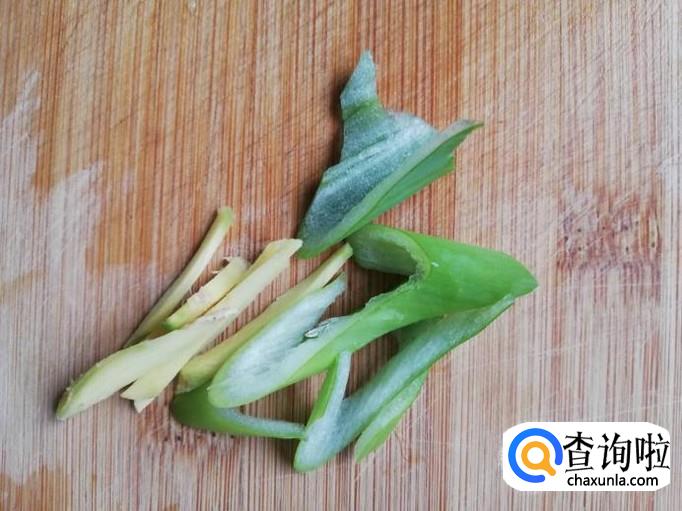 青椒洗干净,切成块,大葱洗净切丝,姜洗净切丝