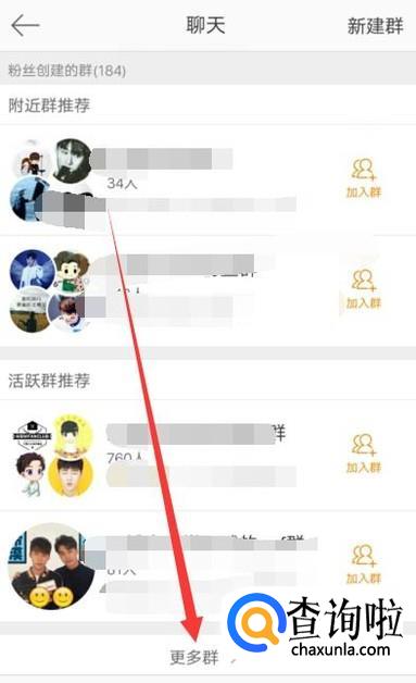 进入之后,点击“更多群”,进入下一页面,如图所示。