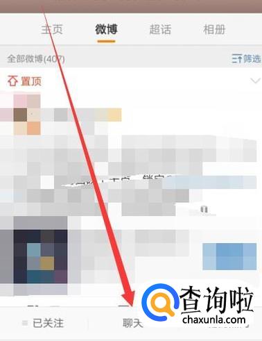 进入之后,找到自己喜欢的偶像的微博主页,选择“聊天”,如图所示。