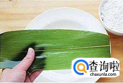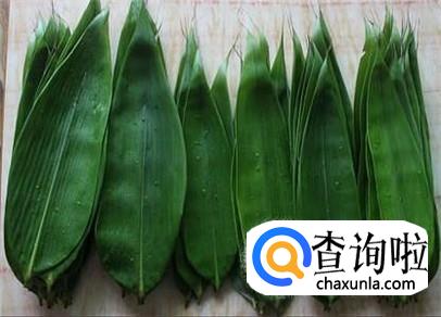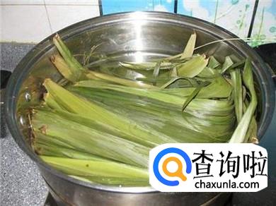 新鲜粽叶泡水半个时辰,用柔软的丝瓜瓤清洗粽叶正反两面