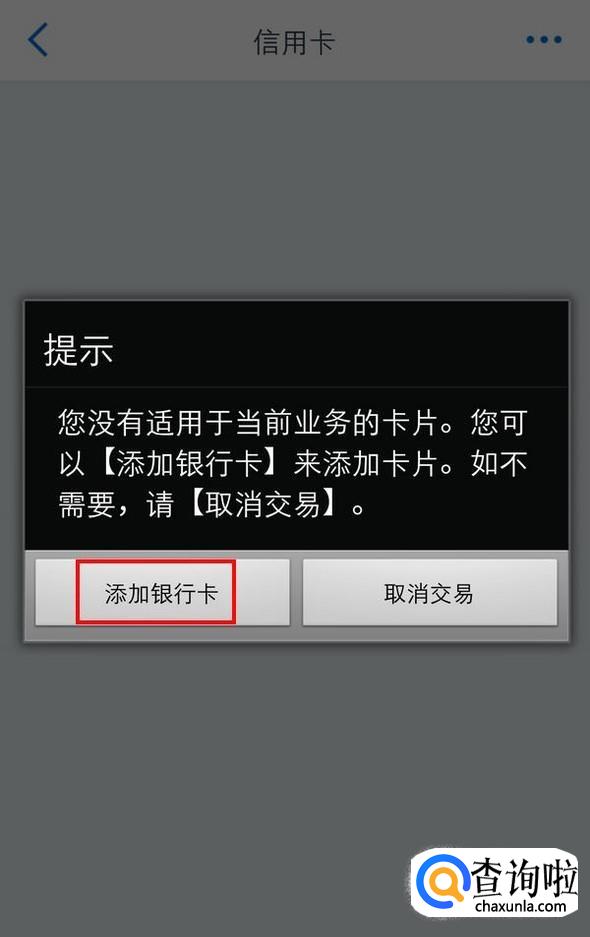由于是首次使用,会有提示信息要求先添加银行卡;
