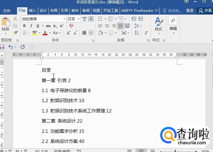 进入【引用】-【目录】-【手动目录】,这样就可以直接插入目录,修改目录上的内容即可。