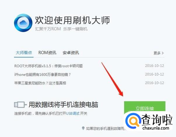 安装完成后,我们打开刷机大师,要先将手机连接上电脑才可以刷机。