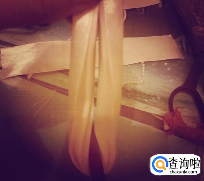 我准备了一根丝带,一串小珠子,一把胶枪 ,一把剪刀,一个发夹。
