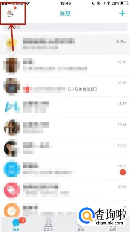 然后点击屏幕左上方的个人头像,如下图所示。