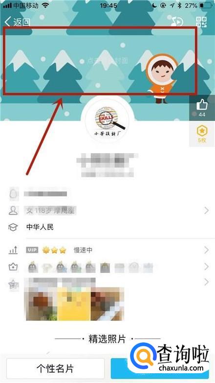 然后点击屏幕上方的个人名片背景图,如下图所示。
