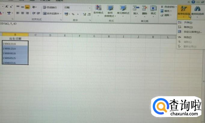 选中B2~B6,点击工具栏中的排序和筛选,根据需要选择升序或者降序。