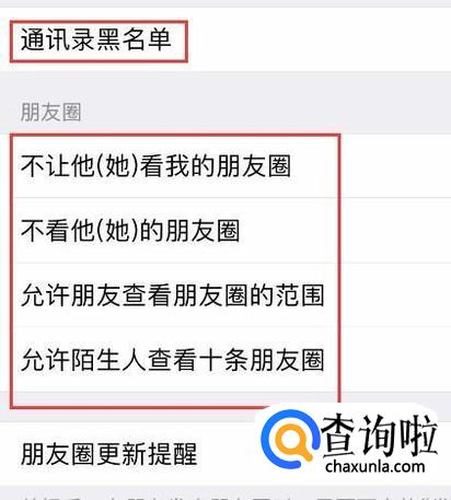 然后在通讯录黑名单中添加自己不想对方看自己朋友圈的人,将姓名都添加进来即可,然后在朋友圈中再次进行设置即可。