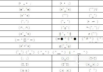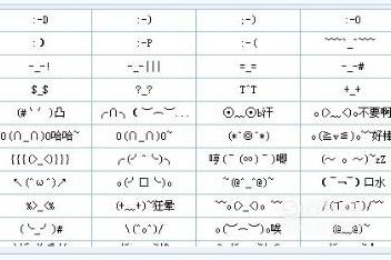 “_”、“.”、“o”^_^、 *_*、 ^o^、“^_~都代表笑脸,-_-||则代表流汗,表示觉得很尴尬。(╯-_-)╯╧╧ 翻桌,╰(‘□′)╯ 暴怒,()^)) 不满,= =# 生气。