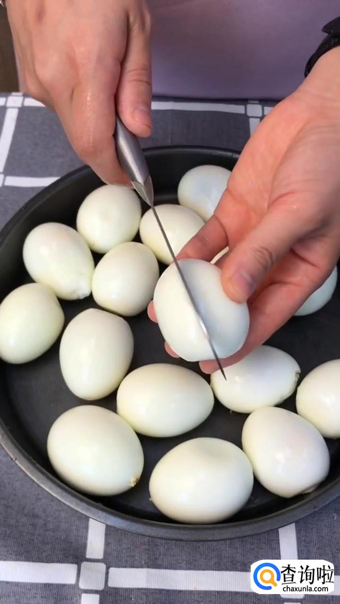 然后在剥好的鸡蛋上打上花刀,如下图所示。