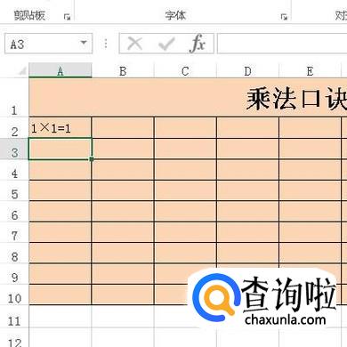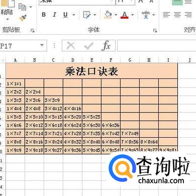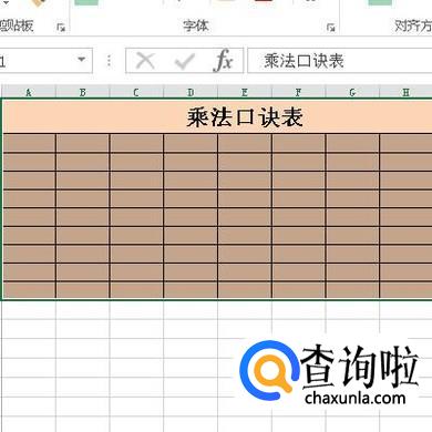 选中A1:I1;把这几个单元格合并;并输入文字:乘法口诀表