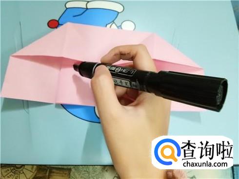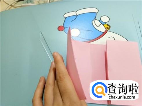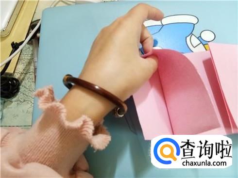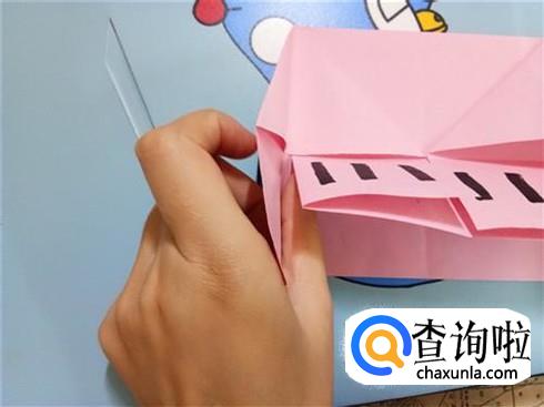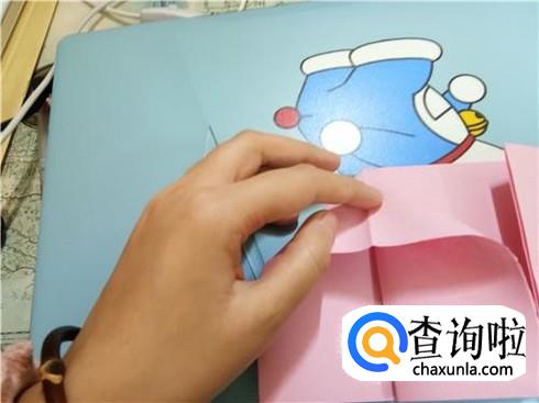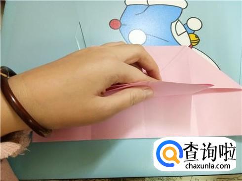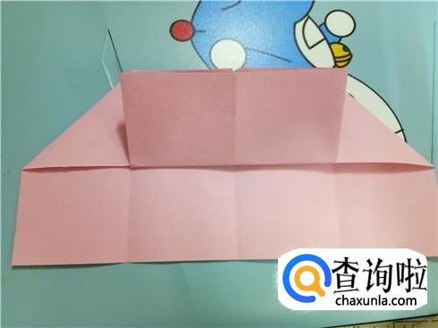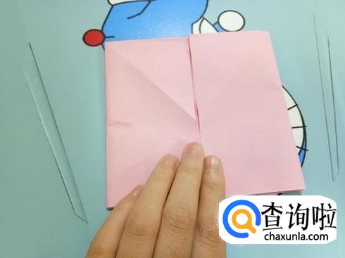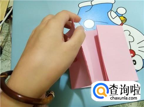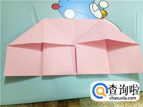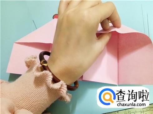 我们将中间形成的两个小的正方形向上折叠过去再放回来。