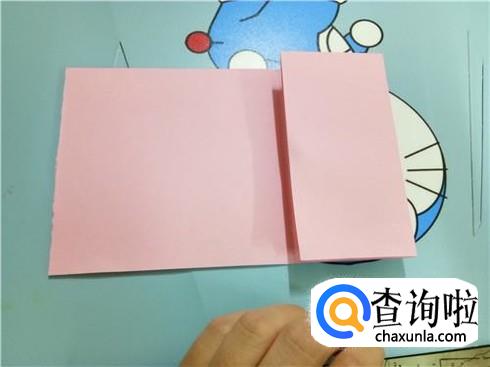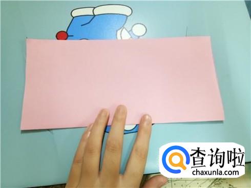 这样就会形成一个长方形,我们再沿着它的长边的中轴线进行对折,再把它放回长方形的样子。