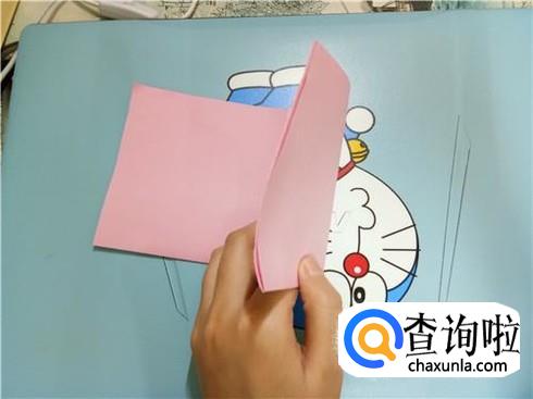 首先,我们找到一张正方形的折纸,沿着它的任意一条中轴线进行对折。