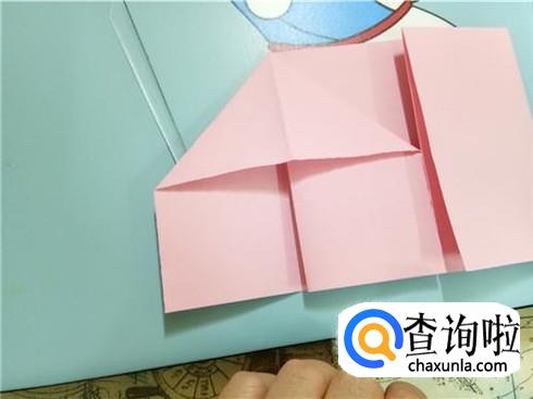 紧接着,我们沿着刚才折叠形成的中轴线轻轻的从上边压下来,并且整理一下形成两个小的三角形。
