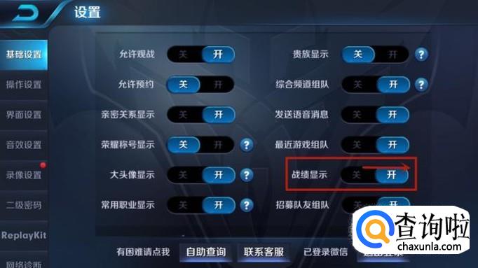 接着关闭战绩显示开关,如下图所示。
