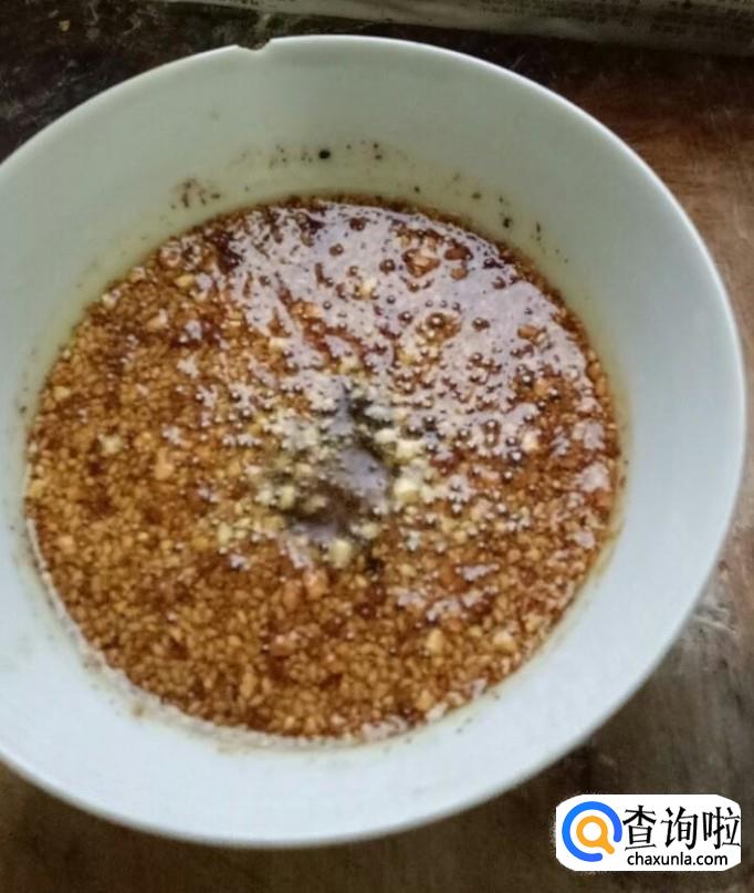 将适量食用油放入锅中加热,待油预热后,将油泼在混合好的佐料上面。