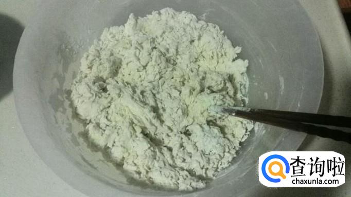 取大约500g牛筋面,加入水搅拌和匀,等一会后将和好的牛筋面做成条状,并用力压成型。