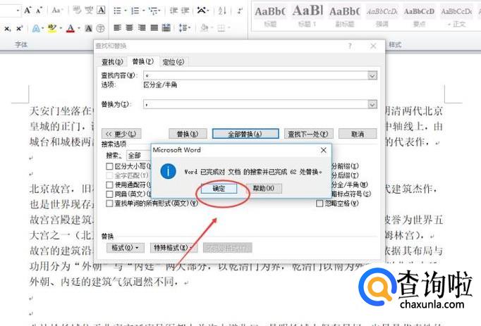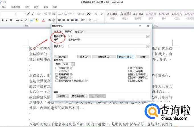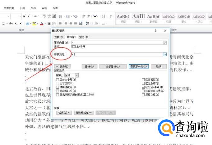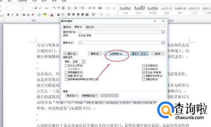 我们以将”句号“替换为“逗号”为例。打开word,选中“替换”。