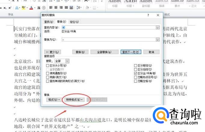 如果需要替换其他的符号,可以点击“特殊格式”寻找哦!