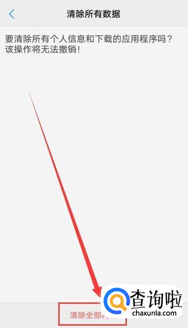 进入下一界面,选择“清楚全部内容”,然后过几分钟手机就会自动重启,重启之后手机就恢复到以前的版本。
