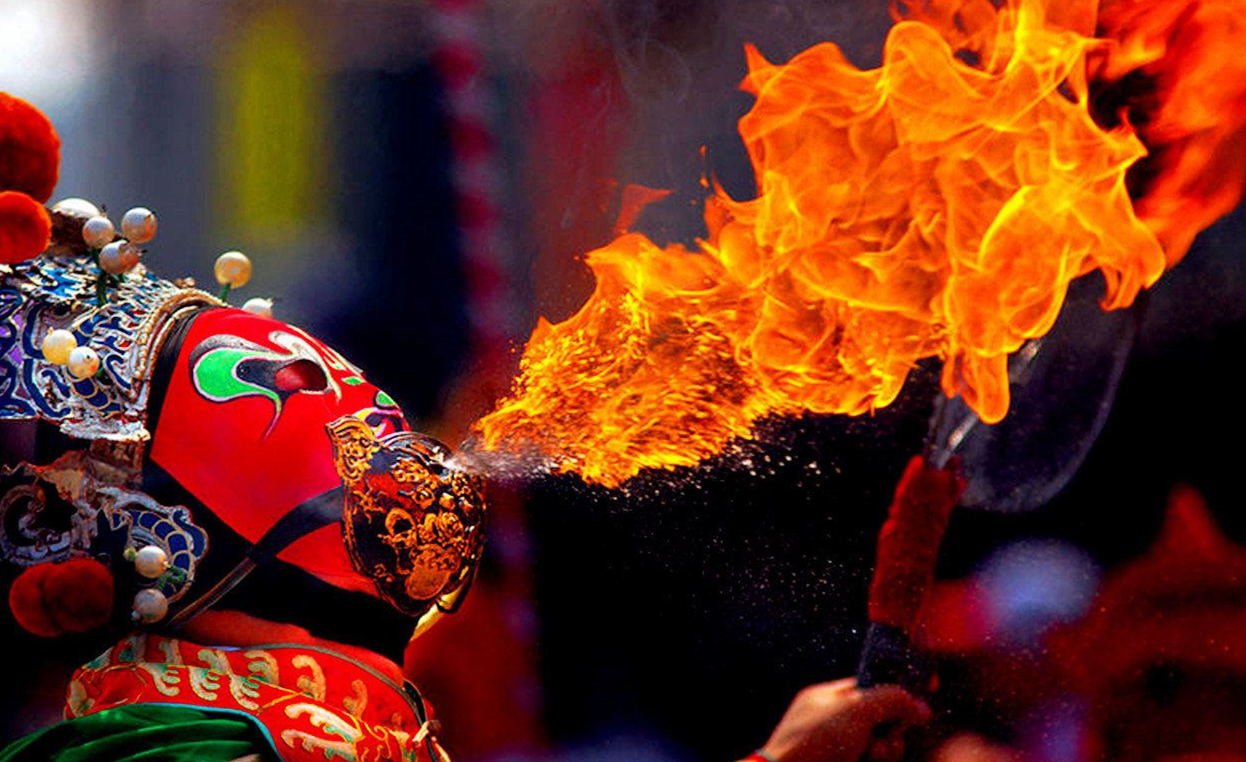 说起变脸,有必要先到川剧那里去溯一溯源头。话说清乾隆、嘉庆年间,每至逢年过节之际,在四川乡镇村落码头处林立的庙堂都会搭起戏台以作庆典,久而久之,川剧就在街头巷尾之中渐成气候。清代“两湖填四川”,为蜀地的文化带来了诸多新元素,昆、高、胡、弹、灯,诸腔戏班汇集入巴蜀各大城中的酒肆街坊之中,生、旦、净、末、丑同亮相于茶馆的小戏台之上,日久逐渐形成共同的风格,清末时统称"川戏",后才改称“川剧”。