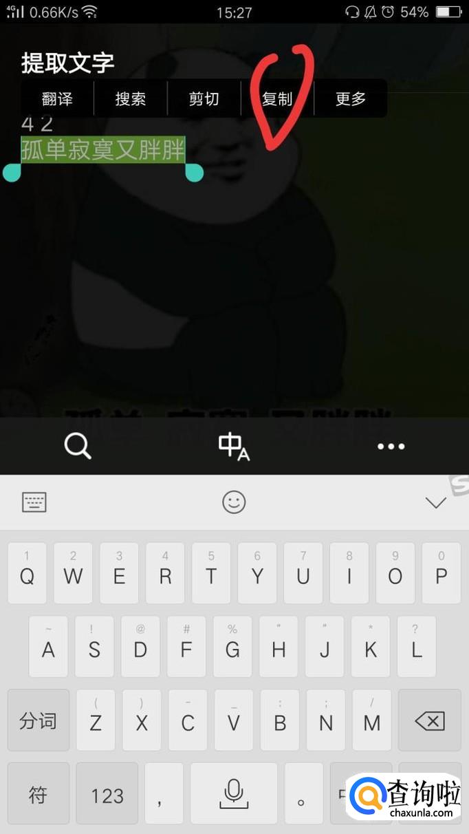 我们选中文字,接着就会弹出很多选项,点击"复制",就可以把文字复制下来。