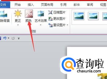 选中这张图片,你会发现word的上方会出现一个图片工具的设置按钮,点击图片工具,然后在图片工具的左侧找到颜色选项。