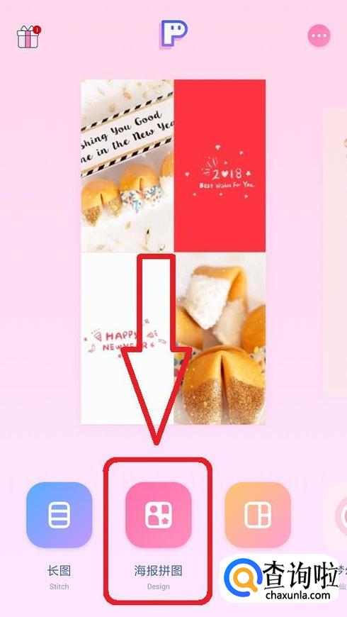 下载好后我们打开pins这个APP,然后进入后我们在首页点击下方的“海报拼图”。