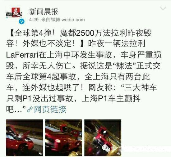 据说此前上海保时捷918的亚洲首撞,也是这位爷的本色出演——今年又联袂奉献了法拉利LaFerrari的亚洲首撞;而且撞烂之后,爷直接弃了不修了,表示重新入手一辆布加迪就是了。——速8妥妥滴应该找秦奋来赞助啊,一定能像王八看绿豆一样,对上眼滴!