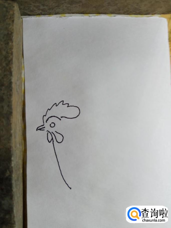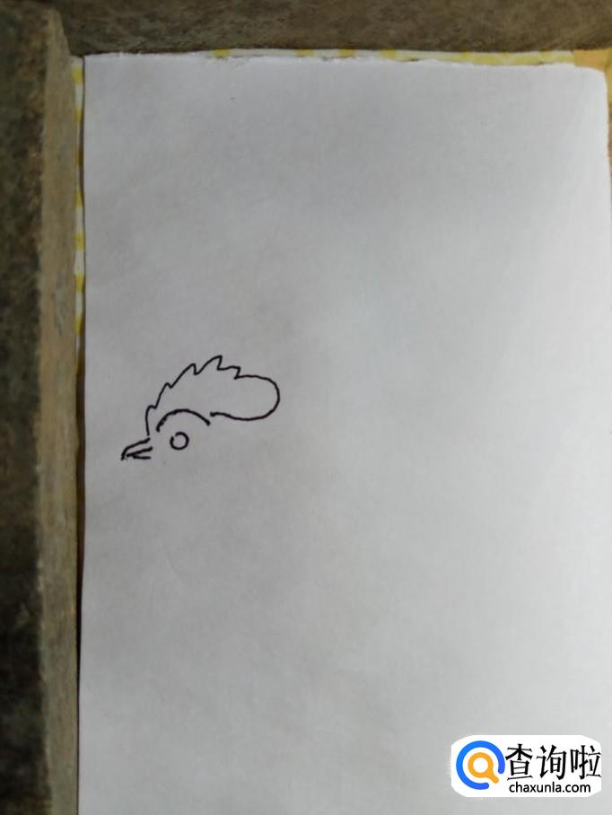 在白纸上画出公鸡的眼睛和嘴巴,公鸡的嘴巴是比较厉害的,要画出它的特征。