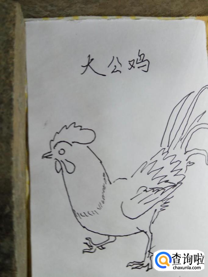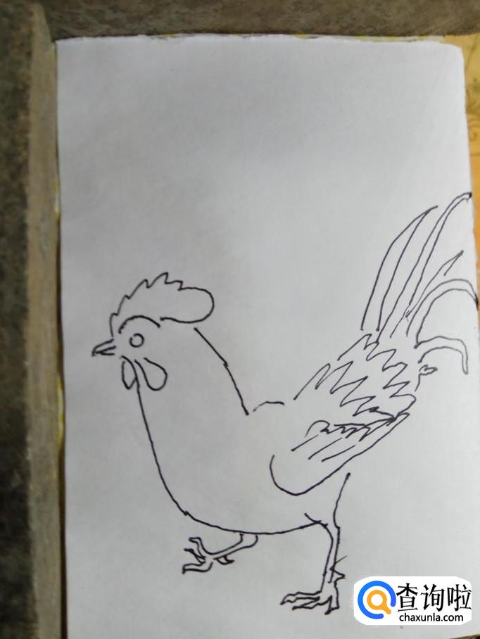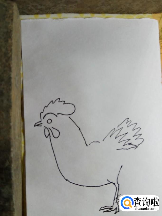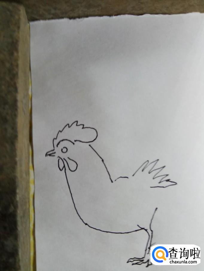 再画出公鸡的另外一条腿,这个公鸡正大步向前走呢。