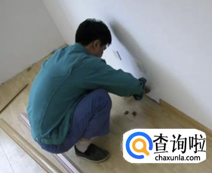 固定踢脚线是非常重要的环节,如果位置出现偏差就得重新开始。在这个过程中要时刻注意,踢脚线应该紧贴墙壁,不能留有缝隙,但是大部分材质的踢脚线都有热胀冷缩的特性,因此靠墙角的踢脚线如同地板,要留大约1cm的缝。所以在固定踢脚线前一定要保持墙面整洁、干净,无凹凸,否则出错只能重头再来,很麻烦。