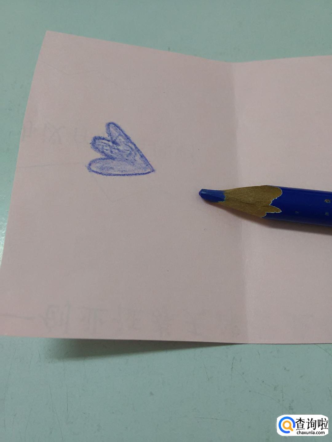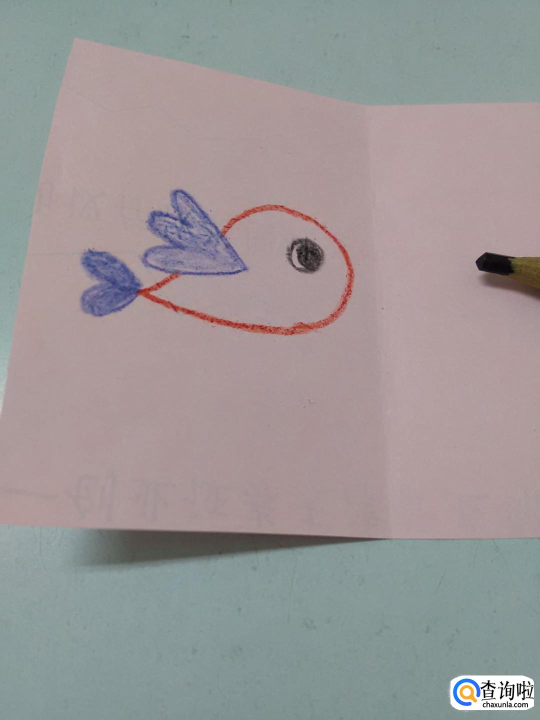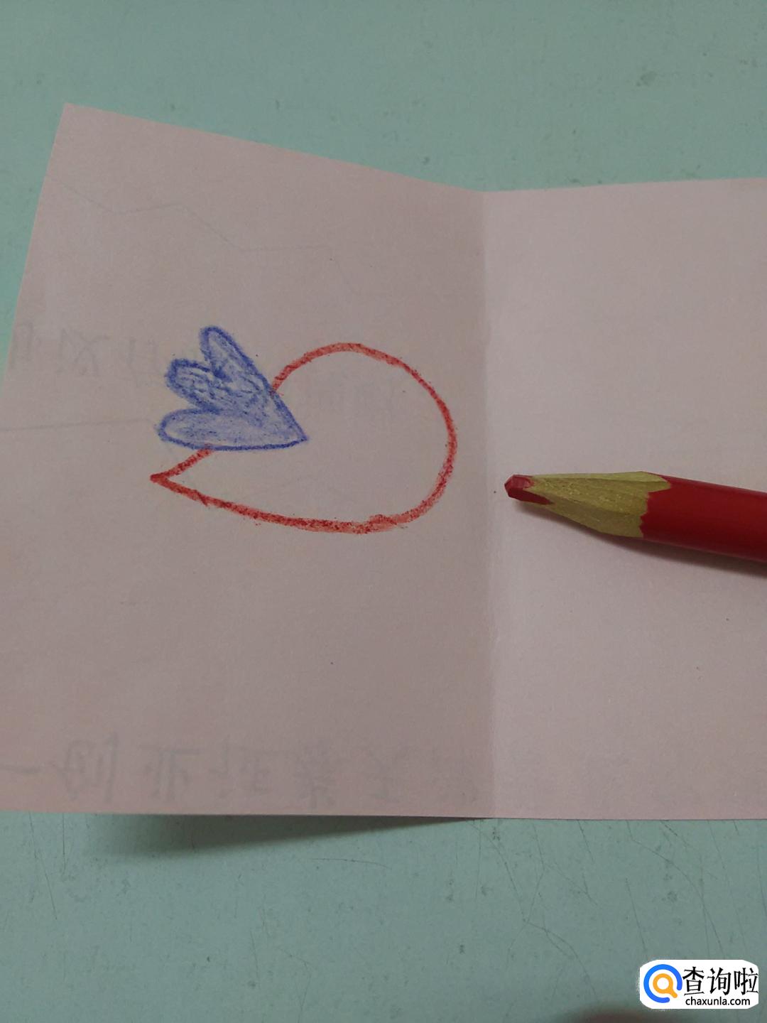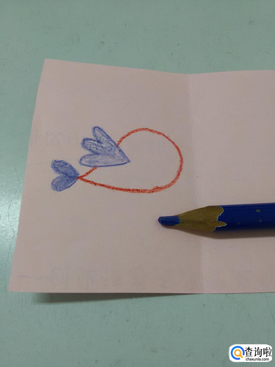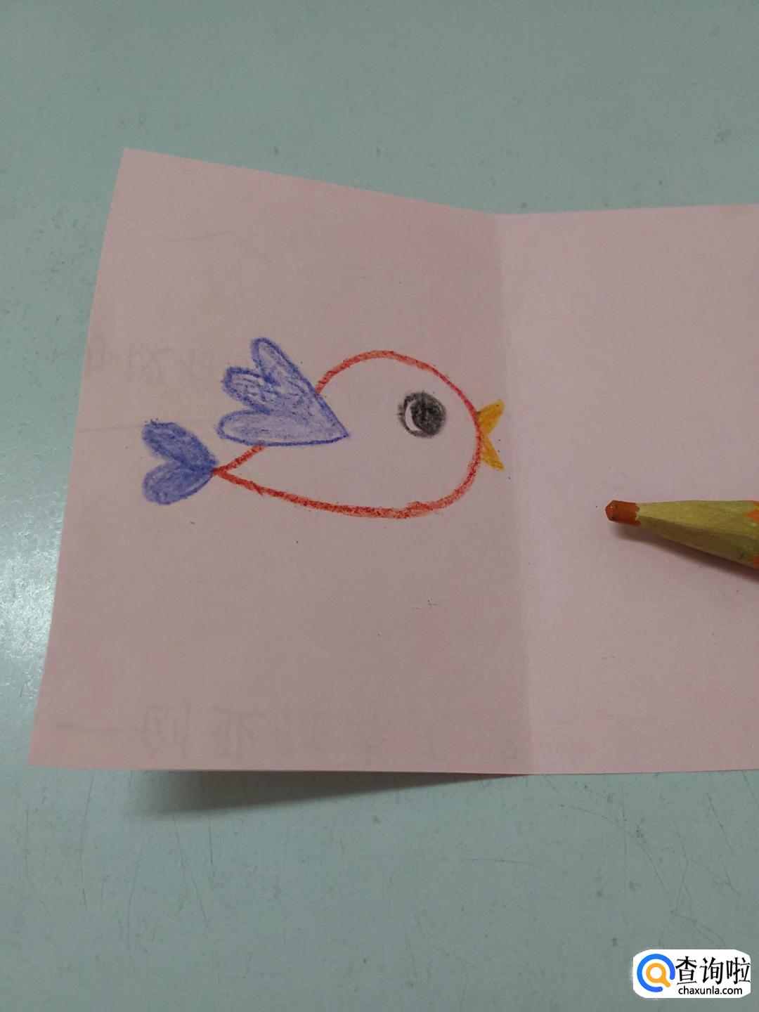 在身体左侧,再用蓝色彩笔画一个心形,表示小鸟的尾巴。