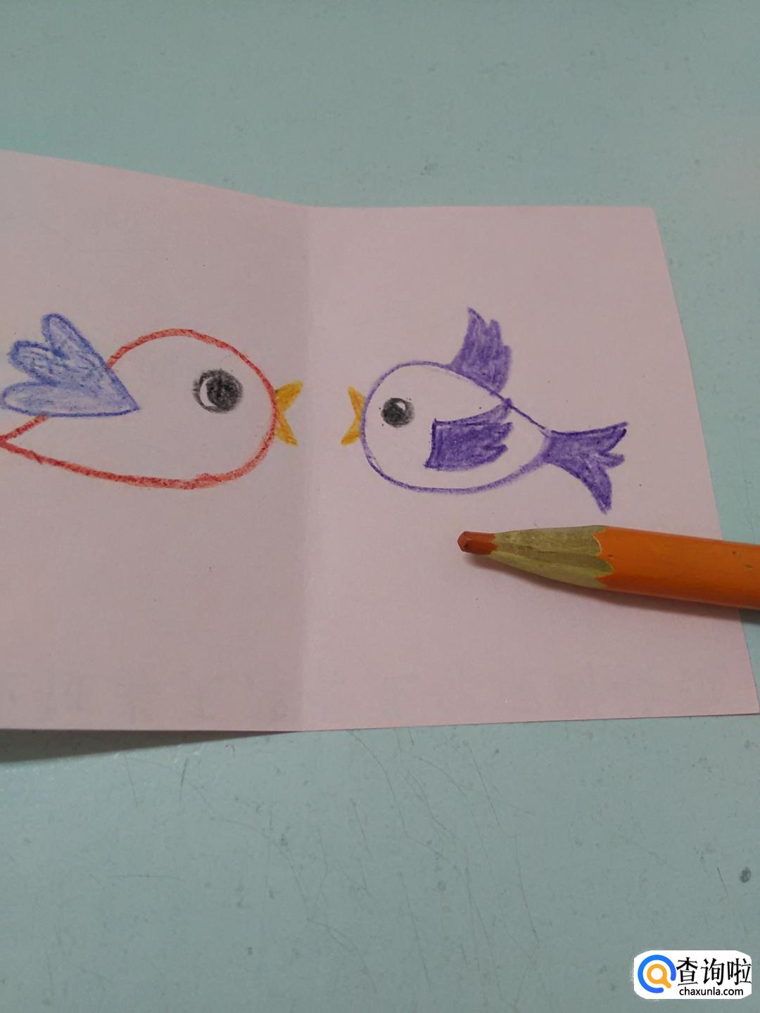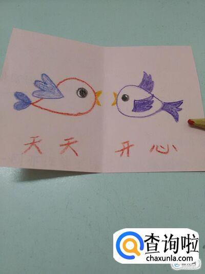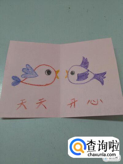 做贺卡,先将彩纸对折,然后在彩纸左右两边各画一只小鸟,最后在彩纸下方写下祝福的话,就做成了一张简单又好看的贺卡,下面就来做贺卡。