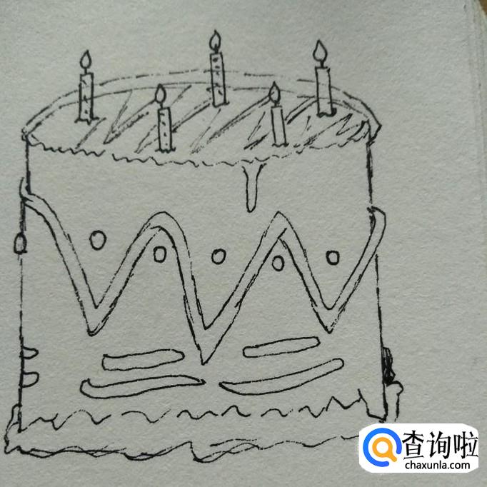 然后重复刚刚的画法,在蛋糕上面多画几根蜡烛