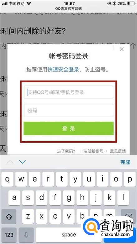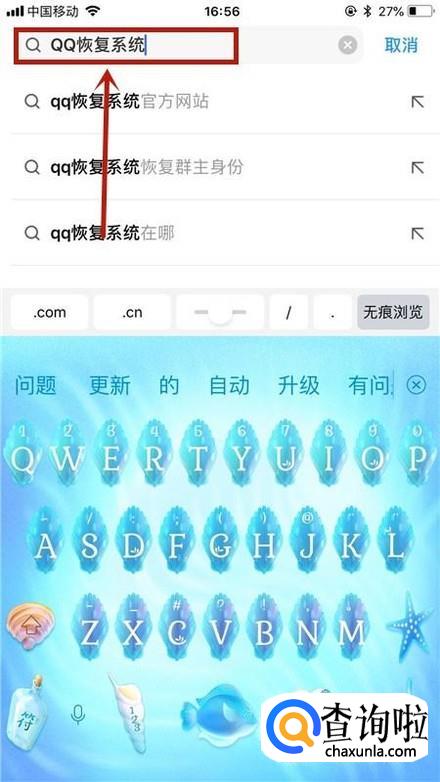 然后输入QQ恢复系统,如下图所示。