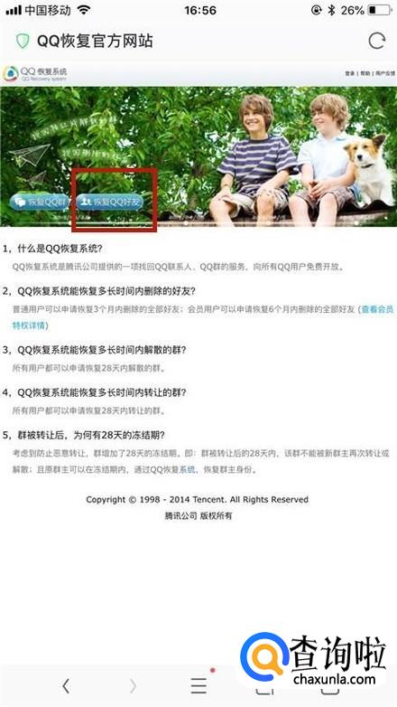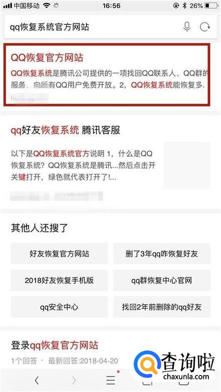 接着点击qq恢复官方网站,如下图所示。