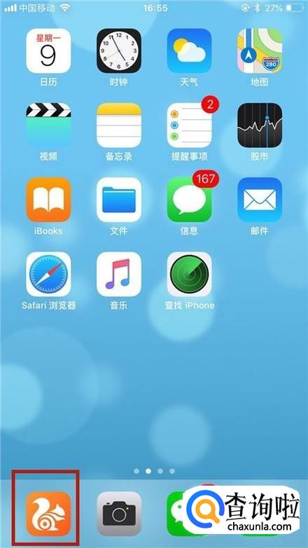 首先点击手机桌面中的UC浏览器,如下图所示。