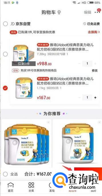 接着在购物车里勾选要下单的商品,点击下面的去结算。