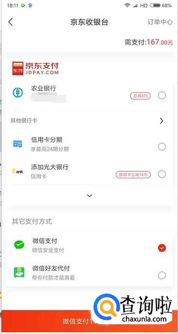 最后我们只需要选择自己的付款方式去付款即可完成下单。