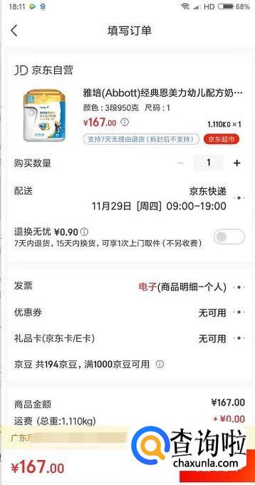 确认过商品信息和地址都没有错的话就可以提交订单了。