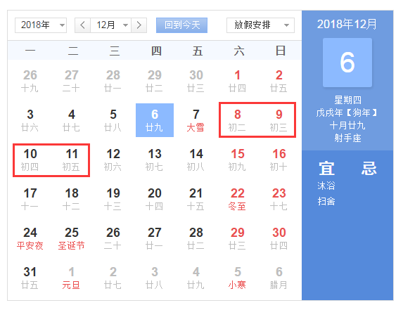 2018年12月11日是广西壮族自治区成立60周年纪念日。经自治区人民政府同意,本自治区内全体公民放假2天,即12月10日、11日放假。12月8日、9日是周末,连起来广西人将拥有一个4天小长假!