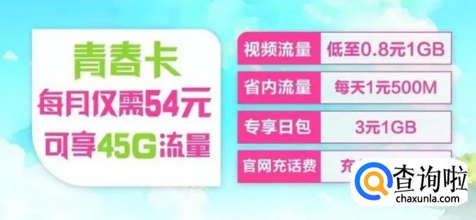 移动青春卡和普通的移动电话卡不同,它是日租流量卡,每天一元即可获得500m了省内流量。除了日租的流量,它还有定向视频流量,套餐费用不同,定向视频的流量额度也不同。