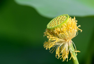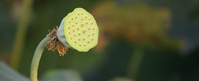 莲蓬是埋藏荷花雌蕊的倒圆锥状海绵质花托,花托表面具有多数散生蜂窝状孔洞,受精后逐渐膨大;每一孔洞内生有一枚莲子,莲子中间长了一根莲芯,果熟期为9-10月。其性喜相对稳定的平静浅水,喜光,极不耐荫。主产于中国湖南、湖北、江西、福建、江苏、浙江和安徽南部等地区。